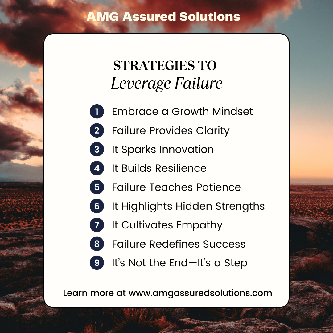 Falling short of an expected outcome—often labeled as 'failure'—can be one of life's most powerful teachers. It provides valuable lessons that foster growth, build resilience, and pave the way to success. When approached with the right mindset, failure becomes more than just a setback—it becomes a stepping stone to something greater. Here are some strategies to leverage failure to your advantage: